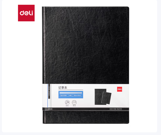 得力/deli DP403 薄本册 办公皮面本16K-160张(黑色)(本)