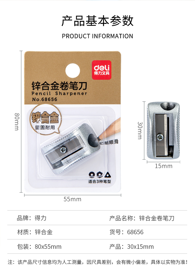 得力(deli)锌合金学生卷笔刀锋利耐用铅笔削笔刀削笔器银色68656
